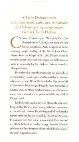 Charles Dickens wrote The Life of Our Lord during the years 1846-1849, just about the time he was completing David Copperfield. In this charming, simple retelling of the life of Jesus Christ, adapted from the Gospel of St. Luke, Dickens hoped to teach his young children about religion and faith. Since he wrote it exclusively for his children, Dickens refused to allow publication.