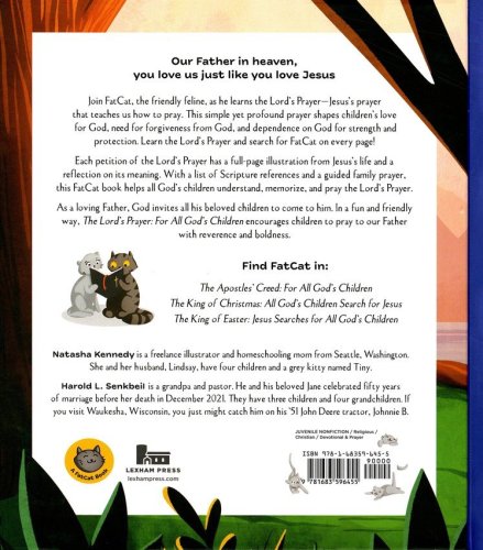 How God's children pray. Join FatCat, the friendly feline, as he learns the Lord's Prayer—Jesus's prayer that teaches us how to pray. This simple yet profound prayer shapes children's love for God, need for forgiveness from God, and dependence on God for strength and protection. Learn the Lord's Prayer and search for FatCat on every page!