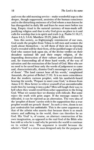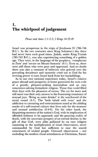 The message of Amos is pre-eminately a message of a new life. The message, however comes in the context of a nation under judgment. Israel hid the emptiness and godlessness of a corrupt society behind an apathetic and norminal outward religion, like so many today. God's view of our society is revealed in Amos in no certain terms. While no refuge is offered for those who reject or disgard God's will, shining through the gloom most brightly is the precious gift of new life through faith in God's Saviour, his Son Jesus Christ.