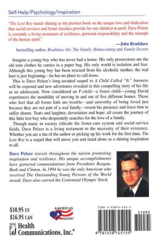 This is Dave Pelzer's long-awaited sequel to A Child Called "It". In The Lost Boy, he answers questions and reveals new adventures through the compelling story of his life as an adolescent. Now considered an F-Child (Foster Child), Dave is moved in and out of five different homes. He suffers shame and experiences resentment from those who feel that all foster kids are trouble and unworthy of being loved just because they are not part of a "real" family.
