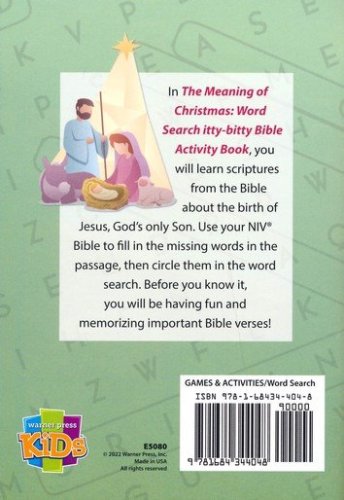 Encourage kids to learn while they puzzle with the Meaning of Christmas Itty Bitty Word Search. This pocket-sized activity book features a collection of word search puzzles that help children learn the Christmas story of Jesus and memorize important Bible verses. Use your NIV Bible to fill in missing words. 48 pages. Ages 5 – 12.