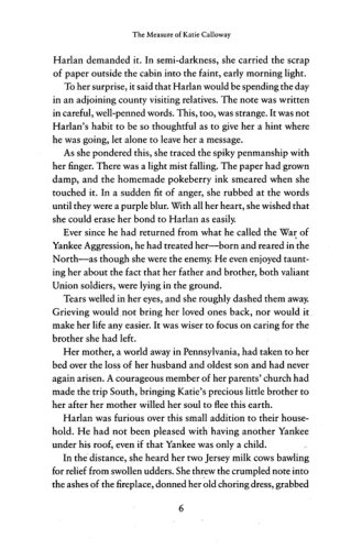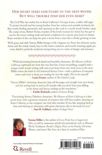 The Civil War has ended, but in Katie Calloway's Georgia home conflict still rages. To protect herself and her young brother from her violent and unstable husband, she flees north, finding anonymity and sanctuary as the cook in a Northwoods lumber camp. The camp owner, Robert Foster, wonders if the lovely woman he's hired has the grit to survive the never-ending work and harsh conditions of a remote pine forest in winter. Katie wonders if she can keep her past a secret from a man she is slowly growing to love.