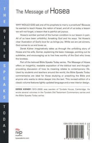 Derek Kidner imaginatively takes us through the unfolding story of Hosea and his wife, Gomer, explaining the basic message, pointing out its subtleties, and encouraging us to live lives worthy of the God who loves the loveless.