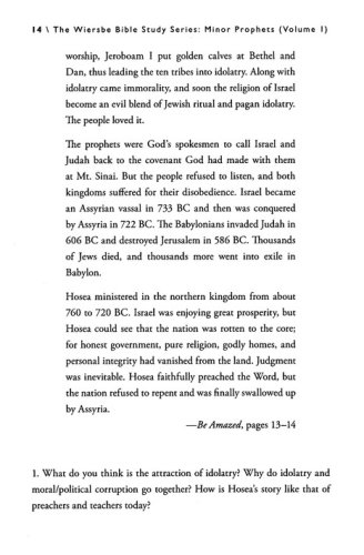 The twelve books of the Minor Prophets are anything but minor. Spanning 450 years, these writings offer a revealing look into the character, nature and heart of God. Based on six Minor Prophets—Hosea, Joel, Jonah, Nahum, Habakkuk, and Malachi—this study offers rich perspective on how God’s plans and purposes intersect in the lives of His people. The Wiersbe Bible Studies Series explores timeless wisdom found in God’s word. Based on Dr. Warren W. Wiersbe’s popular "BE" series, each study provides topical, relevant insights from selected books of the Bible. Designed for small groups, this eight-week study features selected commentaries from Be Amazed, engaging questions, and practical applications, all designed to help you connect God’s word with your life.