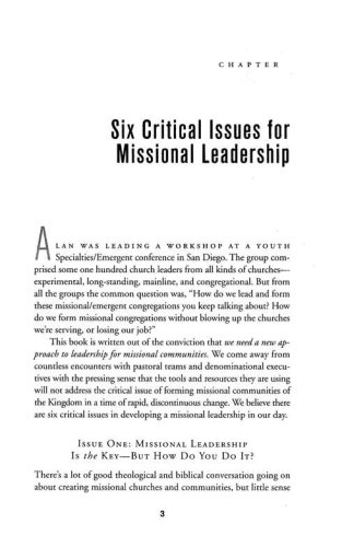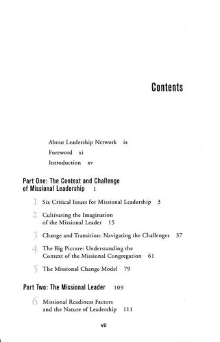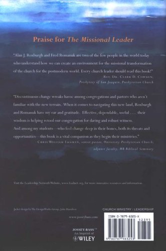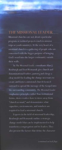 In The Missional Leader, consultants Alan Roxburgh and Fred Romanuk give church and denominational leaders, pastors, and clergy a clear model for leading the change necessary to create and foster a missional church focused outward to spread the message of the Gospel into the surrounding community. The Missional Leader emphasizes principles rather than institutional forms, shows readers how to move away from “church as usual,” and demonstrates what capacities, environments, and mindsets are required to lead a missional church.