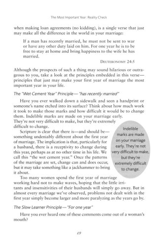 Your marriage could be one of history’s great love stories! As newlyweds, it’s time to ensure that your marriage can meet the challenges it will face right around the corner. Cultivating good habits during these first twelve foundational months of your marriage and knowing what to focus on will set the stage for years to come. Robert and Bobbie and Mark and Susan know that there’s a big difference between preparation and actual experience. This is your guide to actually dealing with all the things that come after "I do." In this unique flip-over format, the chapter topics are the same but one half is written by men for the husband, and the other half is written from a women’s perspective for the wife. As a couple, you’ll each progress through your part of the book and meet somewhere in the middle. Become an expert on what really makes your spouse happy, and enjoy the benefits of a great partnership. Take an honest look at the family you grew up in: its unwritten codes, how it has shaped you, and the ways it affects your relationship with your mate. Learn how to speak each other’s "language" and appreciate the qualities each of you brings to your marriage. You’ll also get an eye-opening look at communication skills, secrets for a great sex life, budget basics, dealing with in-laws, navigating tough times, and much more. Above all, you’ll cultivate a spiritual unity that draws the two of you closer to each other as you draw closer to God. Start reading, and make this first year together what it was meant to be: the most important year in your life.