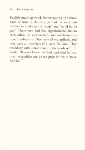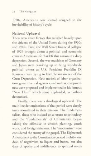 The Navigator will motivate you to joyfully obey God more. It will invite you to share in Trotman’s “bifocal vision”: a consuming passion for the salvation of the world and also for the spiritual nurturing of one individual. He once said, “If you care for one, God can give you a burden for the world.” Through the worldwide Christian organization he founded, The Navigators, Trotman helped bring back some forgotten biblical truths: the importance of personal follow-up, one-on-one training, and the multiplication of disciples.