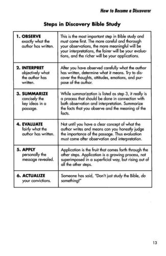 The learner gains an understanding of how to become a discoverer, and observer, of the text as well as how to interpret it, and incorporate it into his or her daily life. Concentration is on guiding the learner to approach study in a more in-depth fashion. Includes ways to summarize the text through charts and discussion. One per learner.