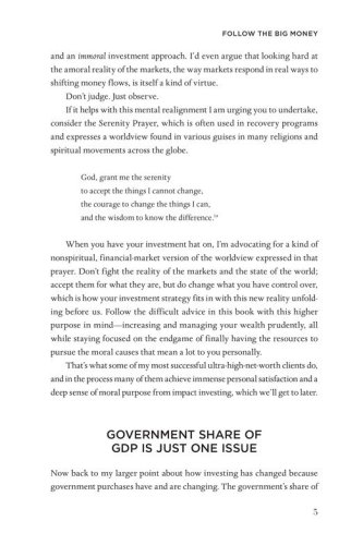 How to follow the money—see where governments are investing and how this insight can drive your own investment decisions.Why you should allocate assets and think about your wealth in three portfolio "buckets" that cover short-term, long-term, and legacy scenarios.How understanding yourself and your personal money issues pays off—literally.How to get results beyond the balance sheet via impact investing, which allows you to grow your portfolio while benefitting causes you care about.