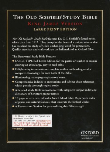 Dr. C. I. Scofield's classic study system and 1917 notes form the core of this definitive resource. A crisp red- letter typeface enhances this Genuine Leather Bible's usefulness. Large, 10-point print makes this edition particularly attractive for preacher and people with vision difficulties.