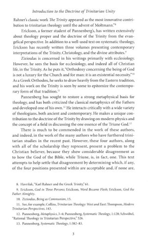These questions were answered by the early church, and their answering analogies, models, and language have come down to the church today. However, theology is not stagnant, and the twentieth century has seen several new models of the Trinity emerge. Many of these models have focused on the three persons without adequately considering the consequences for the unity of God.