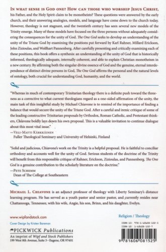 The One God seeks to develop an understanding of the unity of the Triune God by examining the positions put forward by Karl Rahner, Millard Erickson, John Zizioulas, and Wolfhart Pannenberg. After carefully presenting and critically examining each of these positions, this book offers a synthesis: an understanding of the unity of God that is historically informed, theologically adequate, internally coherent, and able to explain Christian monotheism in a new century. By affirming both the singular divine essence of God and the genuine, eternal interdependence of distinct divine persons in God, The One God affirms the personal and the natural levels of ontology, both crucial for understanding God, humanity, and the world.