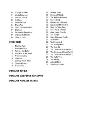 FEATURES:365 daily devotionalsBible passages to set up each day’s themeA contemporary story to apply each passage to today’s boys and girlsDaily memory verse“Key” for each devotional summarizing the applicationComplete topic, Scripture reading, and memory verse indexes