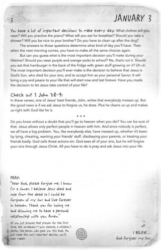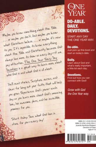 Each devotion encourages tweens to build a personal, active faith based on the core beliefs of the Bible and the Christian faith. Each day’s reading combines insights, NLT Scripture verses, and statements of Christian belief, creative applications, and prayer suggestions. Previously published as Young Believer 365.