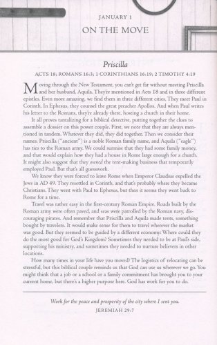 Starting with Mary, who initially discovered the empty tomb, women have played a significant role in the history of the Christian church. Their prayers, their songs of faith, and their steadfast perseverance in the face of adversity can still encourage us today. Spend the year with some of the greatest women in Christian history: from Claire of Assisi to Joan of Arc, from Fanny Crosby to Susannah Wesley, from Catherine Booth to Anne Bradstreet, and many more. This One Year book leaves no historical stone unturned in order to help you discover the amazing spiritual heritage you have in the lives of faith-filled women of the past.