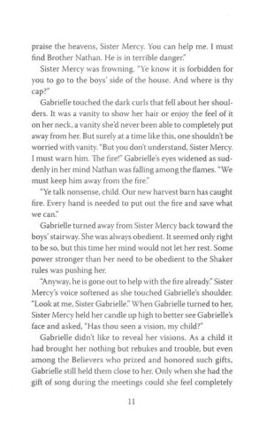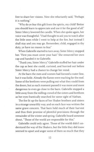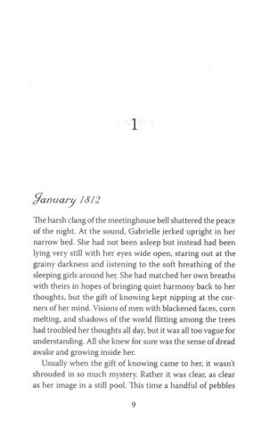 For as long as she can remember, Gabrielle Hope has had the gift of knowing–visions that warn of things to come. When she and her mother joined the Pleasant Hill Shaker community in 1807, the community embraced her gift. But Gabrielle fears this gift, for the visions are often ones of sorrow and tragedy. When one of these visions comes to pass, a local doctor must be brought in to save the life of a young man, setting into motion a chain of events that will challenge Gabrielle's loyalty to the Shakers. As she falls deeper into a forbidden love for this man of the world, Gabrielle must make a choice. Can she experience true happiness in this simple and chaste community? Or will she abandon her brothers and sisters for a life of the unknown?
