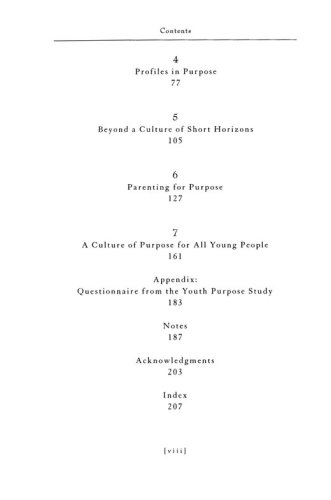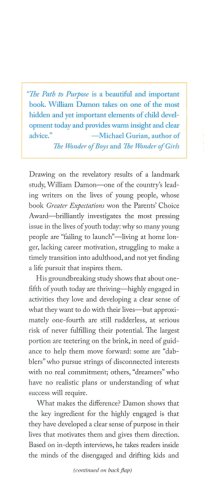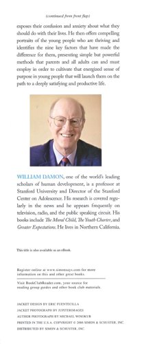 What makes the difference? Damon shows that the key ingredient for the highly engaged is that they have developed a clear sense of purpose in their lives that motivates them and gives them direction. Based on in-depth interviews, he takes readers inside the minds of the disengaged and drifting kids and exposes their confusion and anxiety about what they should do with their lives. He then offers compelling portraits of the young people who are thriving and identifies the nine key factors that have made the difference for them, presenting simple but powerful methods that parents and all adults can and must employ in order to cultivate that energized sense of purpose in young people that will launch them on the path to a deeply satisfying and productive life.