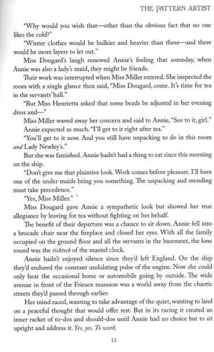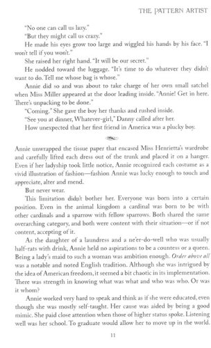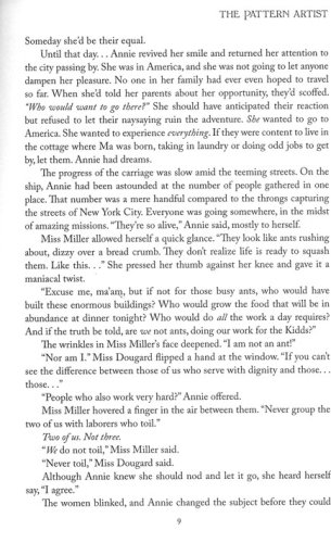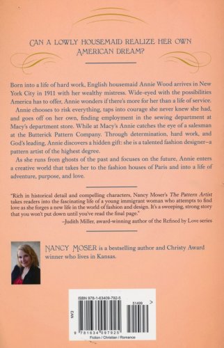 Annie chooses to risk everything, taps into courage she never knew she had, and goes off on her own, finding employment in the sewing department at Macy’s. While at Macy’s Annie catches the eye of a salesman at the Butterick Pattern Company. Through determination, hard work, and God’s leading, Annie discovers a hidden gift: she is a talented fashion designer—a pattern artist of the highest degree.