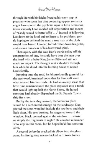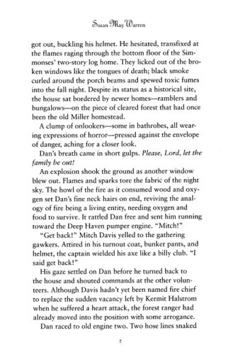 Ellie Karlson is new to Deep Haven. As the town's interim fire chief, she is determined to lead the local macho fire crew in spite of their misconceptions about her. But when someone begins setting deadly fires, Ellie faces the biggest challenge of her life. Especially when sparks fly with one of the volunteers on her crew: Pastor Dan Matthews. As Ellie battles to do her job and win the respect of her crew, she finds that there is one fire she can't fight—the one Dan has set in her heart.
