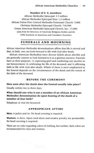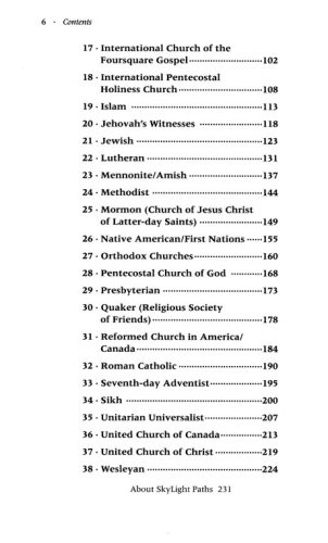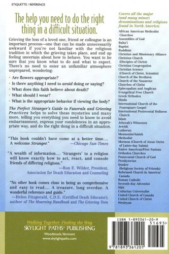 In today's pluralistic culture it is increasingly common to be called upon to offer condolences to or attend the funeral of a relative, friend, or colleague whose faith practices are unfamiliar to us. This unique guide provides the solution for such sometimes awkward situations. Covers all the major (and many minor) denominations and religions found in North America — from Hindu to Presbyterian, Mennonite to Sikh — based on information obtained directly from each.