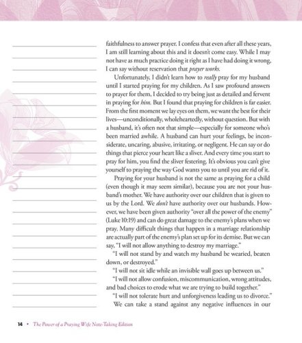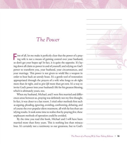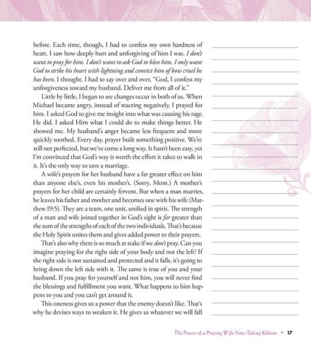 Now with space on each page for journaling and reflection, this beautiful hardcover note-taking edition will guide you in prayer over your marriage for years to come. Your notes and reflections will become treasured reminders of how God answers prayer over time.