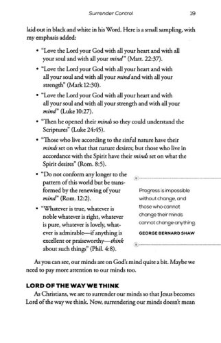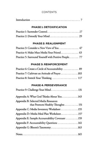 Detoxification—remove the clutter from your mindRealignment—establish your thoughts on God's truthReinforcement—bring others along on the journeyPerseverance—maintain your positive momentum