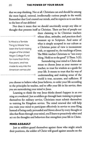 When you choose to take each thought captive to the obedience of Christ, you drive out the world's way of thinking that breeds depression, discontent, and despair—and make room for more joy, faith, and purpose. Let bestselling author Stan Toler teach you an easy four-step process for restoring order to your brain: