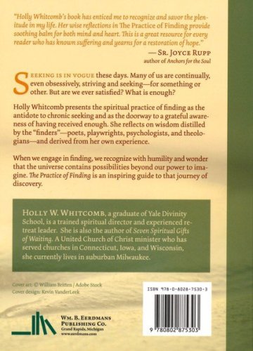 Holly Whitcomb presents the spiritual practice of finding as the antidote to chronic seeking and as the doorway to a grateful awareness of having received enough. She reflects on wisdom distilled by the "finders"—poets, playwrights, psychologists, and theologians—and derived from her own experience.