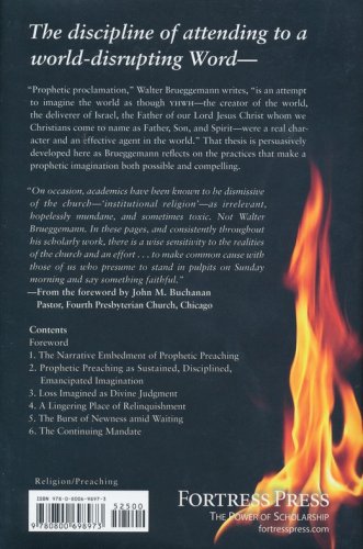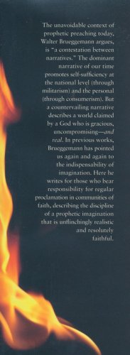 Walter Brueggemann declares that the necessary character of truly prophetic preaching today is "a contestation between narratives." If the dominant narrative of our time promotes national self-sufficiency (through militarism) and personal self-sufficiency (through consumerism), it must be opposed by a different narrative. Prophetic preaching takes its stand in a world claimed by a God who is gracious, uncompromisingand real. Brueggemann writes here for leaders in faith communities who bear the responsibility of preaching. He describes the discipline of a prophetic imagination, in an unflinchingly realistic, unwaveringly candid manner.