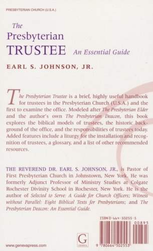 The Presbyterian Trustee is a brief, highly useful handbook for trustees in the Presbyterian Church (U.S.A.) and the first to examine the office. Modeled after The Presbyterian Elder and the author's own The Presbyterian Deacon, this book explores the biblical models of trustees, the historic background of the office, and the responsibilities of trustees today. Added features include a liturgy for the installation and recognition of trustees, a glossary, and a list of other recommended resources.