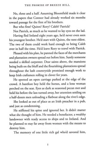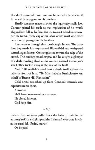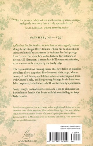 Anxious for his brothers to join him on the rugged frontier along the Mississippi River, Connor O’Shea has no choice but to indenture himself as a carpenter in exchange for their passage from Ireland. But when he’s sold to Isabella Bartholomew of Breeze Hill Plantation, Connor fears he’ll repeat past mistakes and vows not to be tempted by the lovely lady.