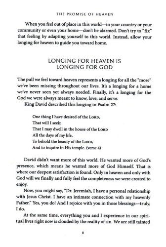 Drawing from decades of faithful ministry, Dr. Jeremiah also answers some of the most personal—and rarely addressed—questions people have about heaven: