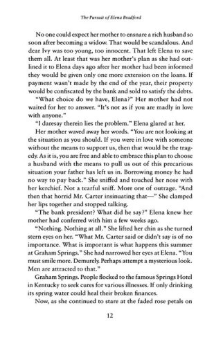 At twenty-two, Elena Bradford has never met a man who made her consider marriage. But when her father dies and leaves the family deeply in debt, Elena becomes their only hope. Her mother uses their last funds to take Elena and her younger sister to Graham Springs, Kentucky, where people find healing by drinking the mineral spring water and healthy recreation through the many daily activities–including dances almost every evening.