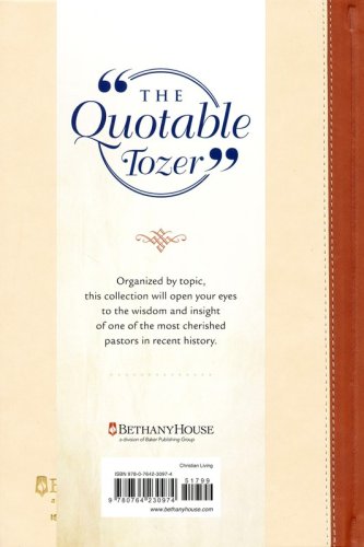 The Quotable Tozer is organized around dozens of topics, including popular culture, the nature of God, spiritual warfare, God's Word, and the afterlife. In addition to the book's appeal to the curious Tozer fan, it is also perfect for preachers, teachers, and authors who want to include Tozer quotes in their sermons and writings. Going beyond the most well-known Tozer books, this volume gives readers access to the true breadth of Tozer's work and thought.