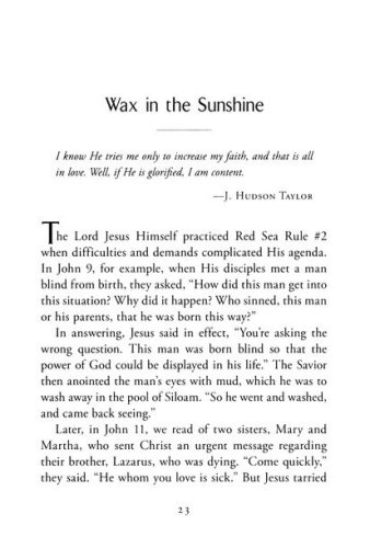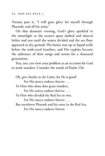 Using the Israelites' story as an example, Robert Morgan offers ten sound strategies for moving from fear to faith. Among them: Realize that God means for you to be where you are. Acknowledge your enemy, but keep your eyes on the Lord. Pray. Life is hard, especially for Christians. It is certain that we will face difficulties, and that God will allow them, as He allowed the Israelites to become trapped between Pharaoh's rushing armies and the uncrossable Red Sea. But just as certain is the fact that the same God who led us in will lead us out. As The Red Sea Rules makes comfortingly clear, He is in control.