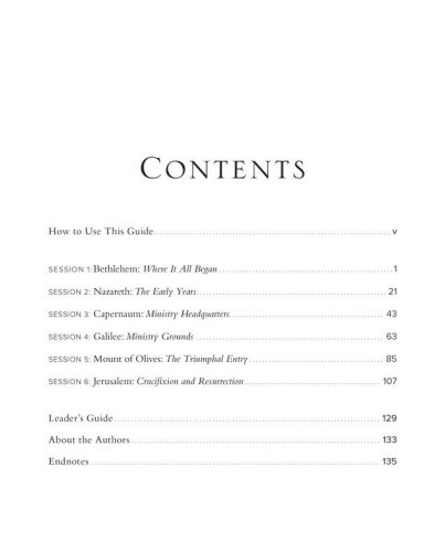 Bethlehem: Where It All Began (13:30)Nazareth: The Early Years (13:30)Capernaum: Ministry Headquarters (14:00)Galilee: Ministry Grounds (16:30)Mount of Olives: The Triumphal Entry (13:30)Jerusalem: Crucifixion and Resurrection (14:30)