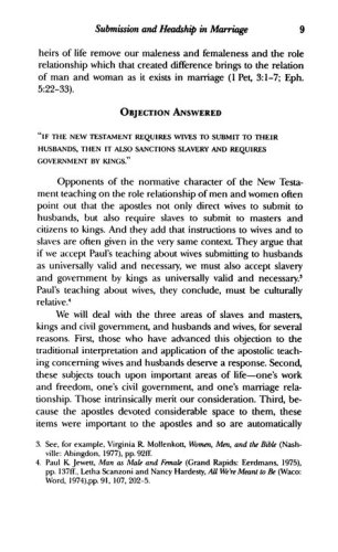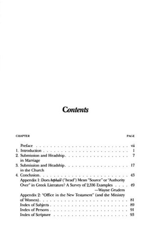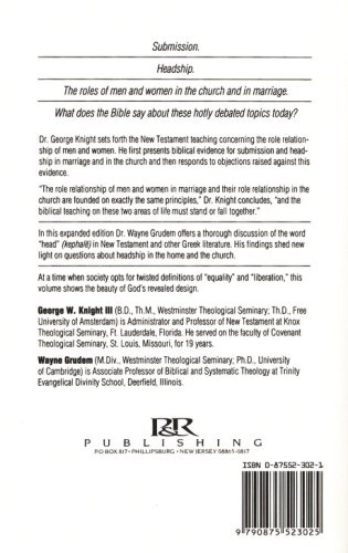 The author sets forth the New Testament teaching concerning the role relationship of men and women. He first presents biblical evidence for submission and headship in marriage and in the church and then responds to objections raised against this evidence. This is an expanded edition in which Dr. Wayne Grudem offers a thorough discussion of the word "head" in New Testament and other greek literature. His findings shed new light on questions about headship in the home and the church.