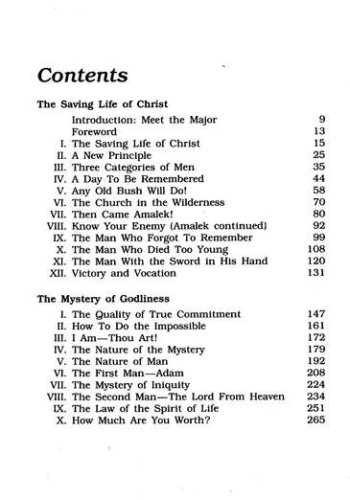 To help us better understand and incorporate victorious Christian living into our lives, Major W. Ian Thomas combines in one volume The Saving Life of Christ, which examines the implications of Christ's life and death, and The Mystery of Godliness, an exploration of the fact that godliness is a mystery. "God did not die just to save us from the consequences of a bad past or past failure, but to 'clear the decks' for divine action in our lives." The Saving Life of Christ contains a warning that our response to Jesus Christ will determine our condition "in the sights of God . . . redeemed or condemned." The Mystery of Godliness offers old and new considerations about the nature of godliness in thought-provoking discussions such as How to Do the Impossible and How Much are You Worth?