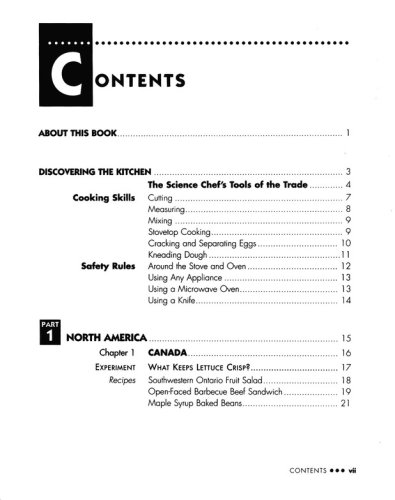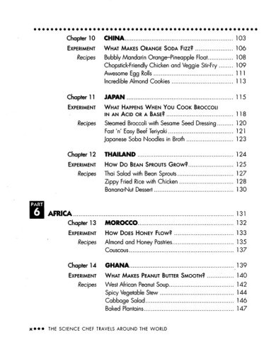 Whether you're a beginner or an experienced cook, you can become anInternational Science Chef, too. All experiments and recipes arekid-tested, include metric equivalents, and require only commoningredients and kitchen utensils. The Science Chef Travels Aroundthe World also includes rules for kitchen safety and a completenutrition guide.