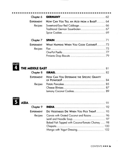 Why does orange soda fizz? Do vegetables really die when you pickthem? What makes peanut butter smooth? You'll discover thescientific answers to these and dozens of other yummy mysteries.Plus you'll get to make and eat Sizzling Mexican Chicken Fajitas,tasty Italian Cannoli, Awesome Chinese Egg Rolls, and many otherdelicious dishes.