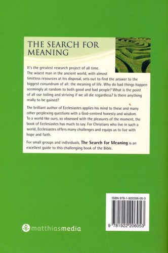 The Search for Meaning is a 9-session study on the book of Ecclesiastes challenging us to live with hope and faith In a world obsessed with pleasure.