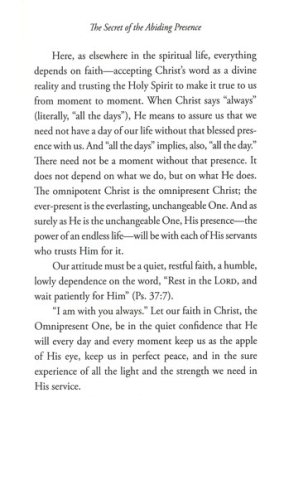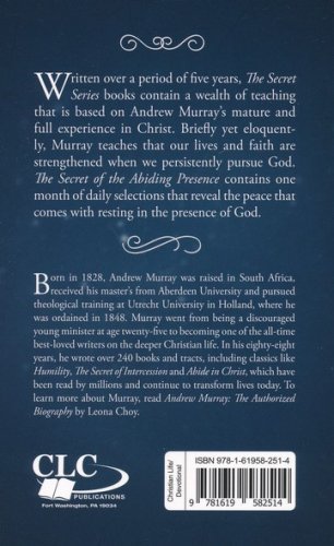 It takes time to know God, become conscious of His presence and live in His power. Unfortunately, the busyness of life often keeps us from that. Part of his classic "Secret Series," Andrew Murray wrote this month-long devotional to focus on the need for quiet, uninterrupted communion with Him.