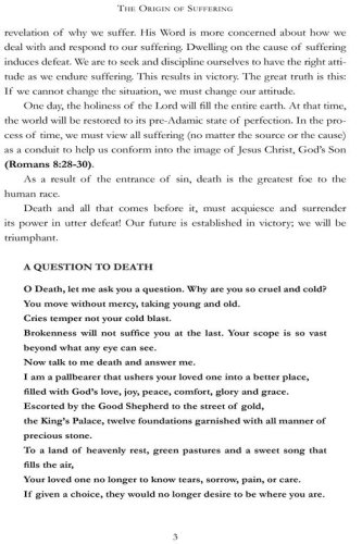 The moment we find ourselves in adversity, we tend to quickly react in two ways: "Lord would you deliver me and deliver now?" And, "Why is this happening to me?" Often, deliverance will not come immediately, and the epic question "why" is truly the big reason for this book. In your lifetime, suffering will be inescapable. This is why it's so important we learn to navigate our way through the thick, dark forest of suffering. If we do not learn this ourselves and neglect to teach those coming after us, we will forego many blessings and experiences with God and expose our children, students and parishioners to the same. The uniqueness of this book is positioned in the fact that its author has experienced suffering beginning at the age of three to the writing of this work. Therefore, the substance of this book rests not in hypothesis, but rather in real-time experience. If you are suffering, this book can help you for the simple reason that the author will compel you to put yourself in the presence of His Majesty, the Lord Jesus! He is the one who has suffered the most. The one who suffered the most can help you the most! Why? Because He is the Almighty Eternal God. He loves you with an everlasting unconditional love. The Lord can identify with your every hurt. He will show you in your suffering, that He is close, intimate, and He cares! Everyone knows someone who is struggling and suffering. This book would be the perfect gift and resource, equipping them to persevere, while, at the same time, experiencing the glorious blessings of God in the process!