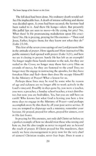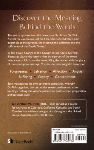 The words Christ spoke from the cross can inform Christians of the purpose, the meaning, the sufferings, and the sufficiency of his death. After an introduction that discusses the nature of Christ's death as natural, unnatural, preternatural, and supernatural, Dr. Arthur W. Pink clearly illustrates the lessons that can be drawn from Christ's words-lessons on forgiveness, salvation, affection, anguish, suffering, victory, and contentment. This comprehensive and accessible volume is useful for both sermon preparation and personal study.