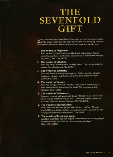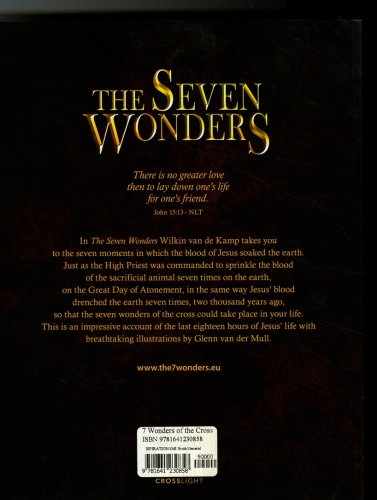 "Greater love has no man than this, that a man lay down his life for his friends." (John 15:13 KJVER) In The Seven Wonders Wilkin van de Kamp takes you to the seven moments in which the blood of Jesus soaked the earth. Just as the High Priest was commanded to sprinkle the blood of the sacrificial animals seven times on the earth, on the Great Day of Atonement, in the same way Jesus' blood drenched the earth seven times, two thousand years ago, so that the seven wonders of the cross could take place in your life. This is an impressive account of the last eighteen hours of Jesus' earthly life with breathtaking illustrations designed to bring deeper understanding to the work of the cross in a meaningful way. In this full-color, glossy companion to The Seven Wonders of the Cross, Wilkin has combined a summary of the full length book with striking illustrations by Glenn van der Mull.