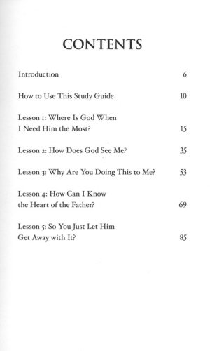 Click here to download a sample chapter. Topics are: Week 1: "Where Is God When I Need Him Most?" Week 2: "How Does God See Me?" Week 3: "Why Are You Doing This to Me?" Week 4: "How Can I Know the Heart of the Father?" Week 5: "So You Just Let Him Get Away With It?" Contains discussion questions, personal applications, and is perfect for small groups, family study, or individual study. 102 pages.