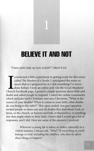 We all have doubts. Throughout this five-week study, Davis invites you to acknowledge and confront your doubts about your Christian faith. Each chapter focuses on a different biblical story that illustrates a key insight into doubt and its effects on our faith. By bringing our doubts out of the shadows and into the light, we have an opportunity to experience an authentic faith seeking understanding. Discussion questions at the end of each chapter are designed to help leaders of small groups. Also available when purchasing the book is access to a free video trailer and an audio recording of the author's sermons as another way to experience the weekly message.