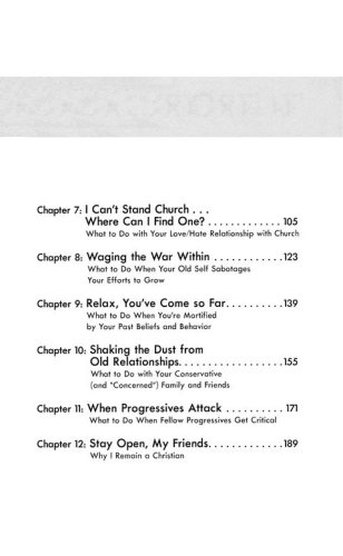 This book is a friendly survival guide to help followers of Jesus navigate the strange and confusing landscape when shifting from conservative to progressive Christianity. This book will prepare progressive Christians (from long-time progressives to those just starting out) for the pitfalls awaiting them as they shift out of their conservative world, and it will equip them for a more abundant, thriving, and peace-filled spiritual life.