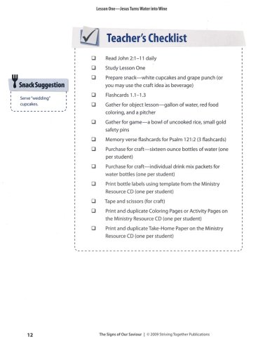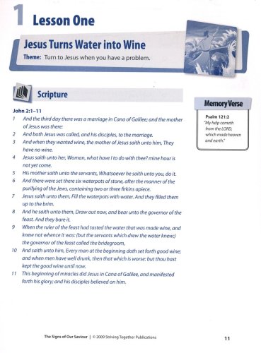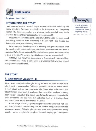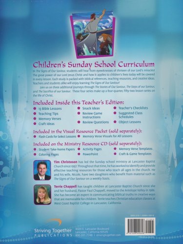 This curriculum series for elementary-age children, The Signs of Our Savior, focuses on thirteen miracles performed by our Lord Jesus Christ during His earthly ministry. These miracles are studied in chronological order and are taken from all four of the Gospel records. Each study is packed with biblical references, teaching resources, and creative ideas. Included inside this Teacher's Edition: