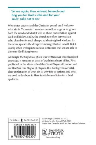 Although The Sinfulness of Sin was written three hundred years ago, it remains an oasis of truth in a desert of lies. First published in the aftermath of the Great Plague of London and entitled Sin, The Plague of Plagues, this book gives a crystal-clear explanation of what sin is, why it is so serious, and what we need to do about it. Here is reliable medicine for a fatal epidemic.